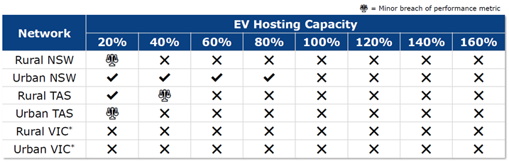 - Rural grids were found to have up to 40 per cent EV hosting capacity.