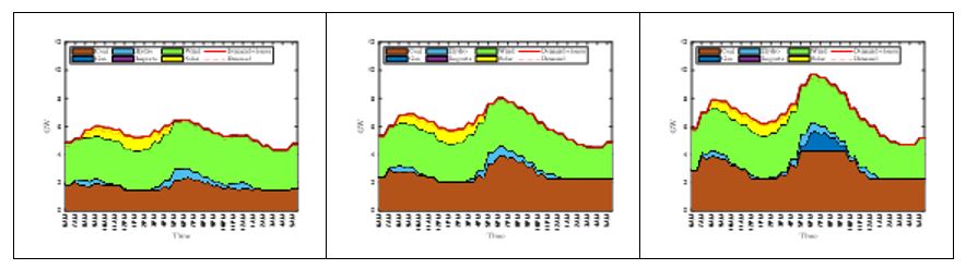 Figure 3: Generation profile in Victoria for electrification increase from 0 to 50 to 100 per cent for a typical winter day in 2025 (Source: FFCRC – RP1.1-02)