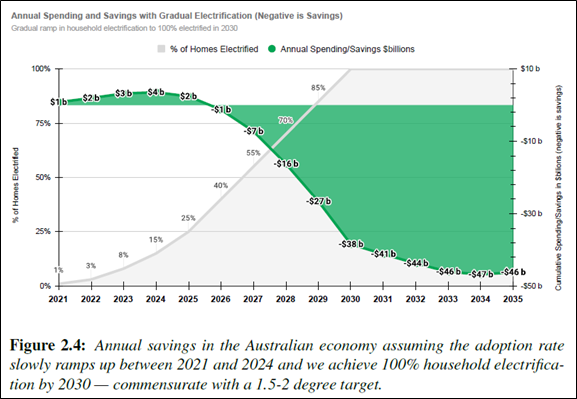 Most of the savings are attributed to vehicles. Or more accurately, to fuel savings from switching from petrol vehicles to electric vehicles.