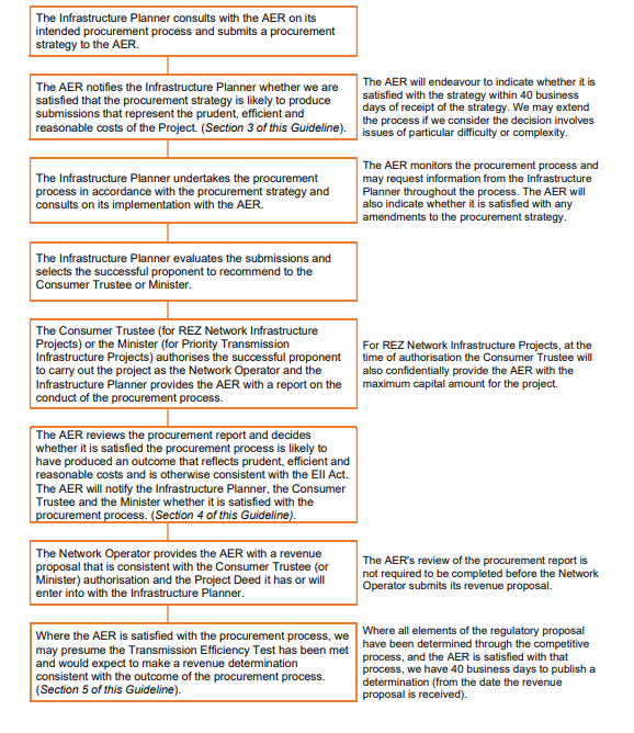 Where projects are contestable, the Infrastructure Planner will develop a procurement strategy, run the tender process and submit a report to the AER on the procurement process outcomes.